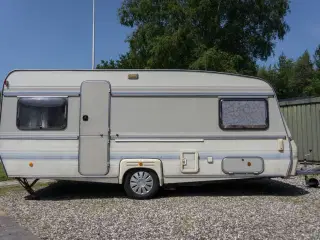 Rigtig fin køreklar tysk kvalitetsvogn, som er klar til omregistrering. Røgfri og der har heller ikke været dyr i den. Div. camping-tilbehør kan evt. følge med. Godt indrettet med køjer i bagenden incl. lille siddegruppe, der også kan laves om til soveplads. Køjernes længde er 192 cm, så også plads til voksne! Forrest er den store siddegruppe, der selvfølgelig også kan laves til sovepladser, så der kan overnatte 5-7 personer..Er man kun et par, kan man lave forenden om til en stor permanent dobbeltseng og bruge bagenden til spise-plads. Mulighederne er mange med denne fine vogn. Sælges kun, da vores bil ikke må trække den. Henv. her eller på 61413700.