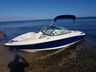 Sea Ray 220 Sunsport fra 2008... ...er en af de både, der med det samme vækker lysten til at komme på vandet. Den kombinerer amerikansk kvalitet, gennemtænkt design og kraftfuld ydelse i en pakke, der både tiltaler den erfarne sejler og familien, der ønsker nem adgang til sjove og trygge oplevelser på sø og hav. Med sin Mercruiser 4.3L MPI motor leverer båden en imponerende kombination af kraft og effektivitet. Motoren starter villigt, reagerer hurtigt og giver en behagelig motorgang, der gør selv længere ture til en fornøjelse. Den stærke V6’er giver masser af moment, så båden går hurtigt op at plane – også med flere personer og udstyr ombord. Det betyder, at den både kan bruges til vandsport, hyggeture og længere dagssejladser uden at miste pusten. Sea Ray 220 Sunsport er kendt for sin alsidighed og veludnyttede plads. Cockpittet er rummeligt med god siddekomfort, og man mærker straks, at hver detalje er gennemtænkt. Der er plads til at slappe af, nyde solen og samtidig have styr på alt under sejlads. Den brede badeplatform gør det nemt at komme i vandet, og indgangen fra agterdækket er både praktisk og sikker. Kabinen under dækket giver mulighed for at trække sig tilbage, tage en lur eller opbevare oppakning tørt og sikkert – en funktion, mange ejere sætter pris på. Designet bærer tydeligt præg af Sea Rays sans for kvalitet. Materialerne er slidstærke, overfladerne lette at holde, og instrumenteringen giver et professionelt indtryk. Selv efter mange sæsoner står båden som et solidt og velbygget eksempel på, hvorfor Sea Ray har så godt et ry. Med en længde på godt 6,7 meter og en vægt, der gør den håndterbar både på vandet og på traileren, er 220 Sunsport en ideel allrounder. Den kan let trækkes efter en større personbil, sættes i vandet uden besvær og er lige så nem at styre i havn som ude på åbent vand. Kort sagt er denne Sea Ray 220 Sunsport fra 2008 en båd, der forener brugervenlighed, ydeevne og komfort på en måde, der gør den svær at slå i sin klasse. En ægte fornøjelse for den, der ønsker en velkørende, veludstyret og smuk daycruiser med masser af liv tilbage i både motor og skrog – klar til mange nye eventyr på vandet.