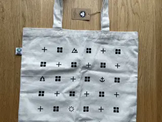 Ferm Living hvid pose i flettet plast med sorte hanke og brune syninger. Helt ny.