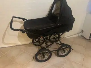 Klassisk barnevogn sælges. Stor og rummelig liggedel med madras, høj kaleche og stabilt stel med fire store hjul. God at køre med både i byen og på grus. Praktisk opbevaringskurv under vognen. Pænt brugt og i god stand.