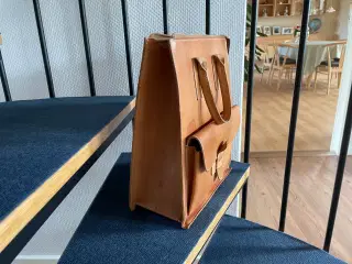 Taske i kernelæder. Fin lille taske- et rum, i kernelæder mål højde 16 cm. Længde på rem 122cm.