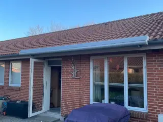 Flot markise med fjernbetjening og lukket kasse når den er inde er flot og fejlfri 250 cm bred 150 cm dyb med beslag til Mont på spær