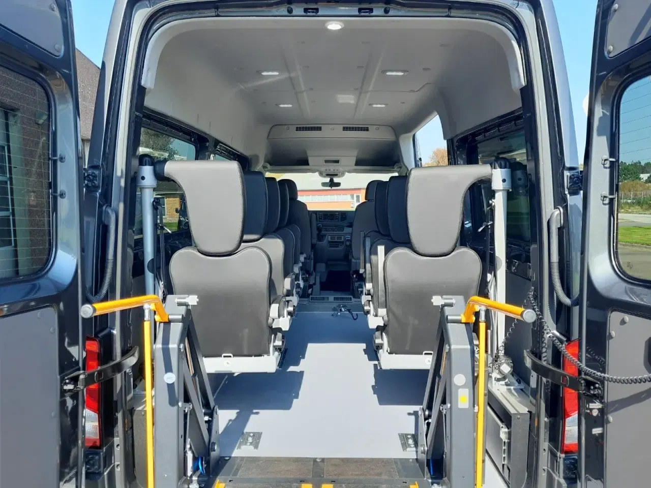 3.140 Kombi L3H2 aut. FWD, 2025, Gråmetal, 0 km, Bussen er indrettet med Rollibox som er markedets mest SIKRE og FLEKSIBLE handicapindretning · med indvendig lift · 7 stk. dreje/klapsæder · integreret bespændinger for op til 4 kørestole samtidig · nakkestøtter til alle kørestolsbrugere for øget sikkerhed · trinbræt og indstigningsgreb ved skydedøren m.m Velegnet til plejehjem · institution Kan leveres med Indvendig lift eller Udvendig lift Bussens udstyr: Farve Indium Gray metallak A/C for og bag, Varme i bag, Adaptiv fartpilot, Motor/kabinevarmer(oliefyr) m. fjernbetjening, Front assist med City emergency brake (Avanceret nødbremse), Bakkamera, .kørecomputer, multifunktionsrat, højdejust. forsæder, læderrat, 17" alufælge, el-sidespejle m/varme, motorkabinevarmer, fjernb. centrallås, adaptiv fartpilot, automatgear, udv. temp. måler, fuldaut. klima, træthedsregistrering, airbag, automatisk lys, bakkamera, dæktryksmåler, isofix Hos Larsen Autoindretning har vi stor erfaring med indretning af institutionsbusser. Når I skal have indrettet en institutionsbus, er der et hav af brugervenlige muligheder. Vi tilbyder blandt andet busser med indvendige- og udvendige lifte.
