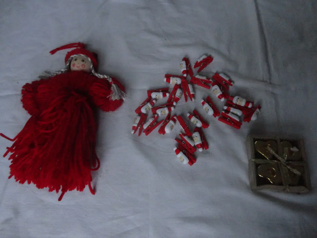 diverse julepynt - stort og småt - pris fra ¤¤ Billede 2 ¤ garn nissepige - pige - fletninger - høj 24 - bred 16 cm - pris 10 kroner ¤ lysestager - ubrugt - guld - bred 3 cm - 4 stk i æske - samlet - pris 5 kroner ¤ Klemme julemand - høj 3,5 cm - 24 ens - plast æske - samlet - pris 12 kroner ¤¤ Billede 3 ¤ Små nisser - porcelæn - småtomtar - høj 10 cm - forskellige - æske - samlet - pris 60 kroner ¤¤ Billede 4 ¤ Huske klemme - nissemor og nissepige - høj 28 cm - metalklemme - fod - samlet - pris 12 kroner ¤¤ Billede 5 ¤ Salt og peber bøsse - nisse mor & nisse far - porcelæn - høj 10 cm - saltbøsse - peberbøsse - julemand - samlet - pris 22 kroner ¤¤ Billede 6 ¤ Julemand & Snemand - fjeder i kroppen - porcelæn - høj 14 cm - huske - metal top - 4 figurer - æske - samlet - pris 20 kroner ¤¤ Billede 7 ¤ Julemand - kagerulle - træstub - porcelæn - høj 24 cm - bred 9 cm - pris 25 kroner ¤¤ Billede 8 ¤ Love Me - høj 8 cm - stof blød - Djävular - Teddykompaniet - Båstad - Sverige - æske bred 6 x 8,5 cm - samlet - pris 20 kroner ¤ Hænge nisse - vinter - skistave - snor - høj 9 cm - nissehue - pris 5 kroner