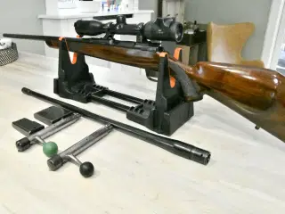 Jeg har valgt at sætte min kære dobbeltriffel til salg, udelukkende af økonomiske og pladsmæssige grunde. Udover at være stort set ubrugt, har jeg fået låsen bruneret, hvor den inden da var i ubehandlet stål. Riflen er også blevet opgraderet med en ejektor. Jeg har selv haft den i næsten 4 år, og har i den tid skudt rundt regnet 50 skud. Tidligere ejer har blot haft den stående i våbenskab. Hverken skæfte, lås eller piber har nogle skrammer eller ridser overhovedet. Riflen er som ny, både mekanisk og kosmetisk. Riflen er i den klassiske tyske 8x57 kaliber, som er lidt mindre hård ved skulderen (og pungen) end den typiske 9,3x74R som rigtig mange dobbeltrifler ellers benytter. 8x57 er en rigtig god skovkaliber til store grise og andet skudstærkt vildt. Forreste aftræk har snelle, som kan sættes ved at trykke den frem. Samlingen på piberne kan ses på sidste billede, hvor der er skudt 2x2 skud fra 50m. Som det fremgår deraf er begge piber rigtig pænt indstillet fra fabrikken. Prisen er umiddelbart vejledende, og jeg modtager gerne fornuftige bud. Der medfølger i øvrigt 2 æsker RWS Evo Green blyfri jagtammunition, som alene har en pris på omkring 2000kr Jeg har forsøgt at være grundig med billederne, men hvis man ønsker flere billeder af noget specifikt, så sig blot til. G&G tillader ikke at man uploader billeder der fylder mere end 1MB, så de er desværre i relativt lav opløsning. Jeg kan evt. sende billeder i bedre kvalitet via SMS eller mail, skulle det ønskes.