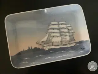 Skål af P. Ibsen’s Enke Kg. Hof. Har nr. 596, 13 cm i diameter og 4 cm høj. Designet af Thorvald Bindesbøll. Er uden skår og i fin stand. 150 kr.