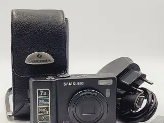 Kompakt Digital Kamera - Samsung PL211 - 14.2 MP, 10x Zoom Sælger dette fine og kompakte Samsung PL211 digitalkamera. Kameraet er perfekt til at tage skarpe billeder på farten, til ferien eller som et godt "første" kamera. Det er nemt at bruge og glider lige ned i lommen. Nøglefunktioner: Model: Samsung PL211 Opløsning: 14.2 Megapixel Optisk Zoom: Kraftfuld 10x optisk zoom Vidvinkel: 27mm vidvinkel (svarende til 35mm formatet) Objektiv: f/3.3-5.9 Samsung Zoom Lens Funktioner: Inkluderer Smart Filter, Hvidbalance, ISO-kontrol og dansk menusprog (som ses på billederne). Perfekt til dig, der ønsker et simpelt, pålideligt og kompakt point-and-shoot kamera med god zoom! TEST: Jeg har grundigt gennemgået dette digitale kamera. Kamerahuset er tjekket for skader, linsens tilstand er kontrolleret, udløserknappen er afprøvet og blitzen er testet. Jeg har ikke udført en fuld funktions test, men købere er velkommen til at afprøve det her, hvis yderligere gennemgang føles nødvendig før køb. Som det fremgår af billederne, er kameraet ikke nyt, og har brugsspor, men ellers i god tidssvarende stand. Der medfølger, hvad der fremgår af billederne. Sælges som beset. ____________________________________________________ FRAGT: Denne vare KAN SENDES FÅ BILLIG FRAGT VED HURTIG HANDEL. Hvis du i din første besked skriver "JEG VIL KØBE" oplyser navn, adresse samt mail og telefonnummer (til forsendelsen), og få fragten til KUN 39 kr.