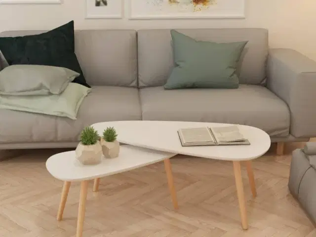 Dette sæt består af to sofaborde i træ, som er fremstillet af massivt fyrretræ med en MDF-bordplade. De udstråler en skandinavisk charme, som vil gøre dem til en fremragende tilføjelse til din stue. - Langtidsholdbart materiale: Sidebordssættet er fremstillet af massivt fyrretræ og er derfor stærkt og robust. - Robust bordplade: De robuste MDF-bordplader giver en stabil og sikker overflade, hvor du kan placere dine drikkevarer, en frugtkurv eller vase eller andre dekorative genstande. - Flere anvendelsesmuligheder: Bordene kan også bruges som natborde, plantestativer, telefonstativer eller endeborde. - Hvid - Materiale: Massive fyrretræsben + MDF-bordplade - Stort bord, mål: 100 x 50 x 40 cm (L x B x H) - Lille bord, mål: 70 x 34,5 x 35 cm (L x B x H) - Med fodpuder - Nem at samle - Pakken indeholder 2 sofaborde