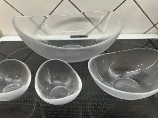 Stor Holmegaard Galaxi skål og 2 fyrfadsstager. Allan Scharff. Den store skål er 23 cm i diameter og ca 15 cm høj.