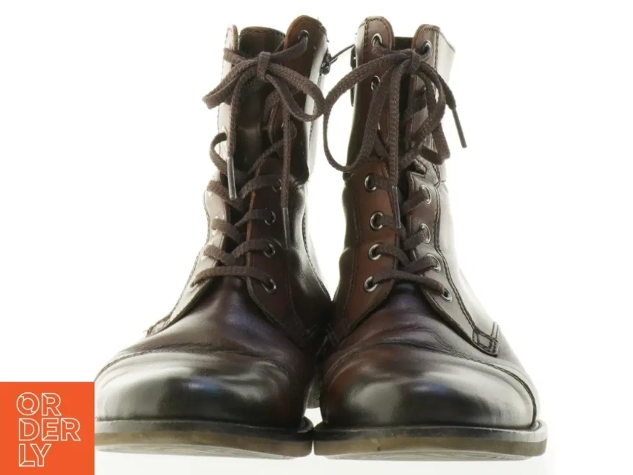 Klik på 'Se annoncen hos forhandleren' for at se varen i vores webshop Et par brune læderstøvler med både snørebånd og lynlås, der sikrer et godt fit, samtidig med at de er nemme at tage af og på. Støvlerne når op til anklen og har en solid gummi sål med et tydeligt mønster, der sikrer godt fodfæste. Brand: Ecco Farve: Brun Stand: 60 - Varen har mindre spor fra almindelig brug (Se billeder) Vi sender til hele landet for 49 kr. Leveringstiden er 1-3 hverdage. Du kan også gratis hente den på vores lager på Industrivej 10 i Slangerup. Er du i tvivl om varen stadig er til salg? Klik på knappen "Se annoncen hos forhandleren" for at se den i vores webshop. Kan du se den der, er den stadig til salg Orderly er en ny måde at købe brugt på. Vi har alle vores sælgeres ting på vores centrale lager. Derfor kan du være helt sikker på at få dine ting - og du kan samle flere ting på tværs af sælgere og kun betale én gang fragt.