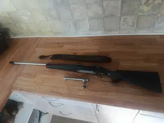 Sauer 202 links med 30/06 og 22-250 og lyddæmper til 22-250 samt en del ammo og ringe til kikkert