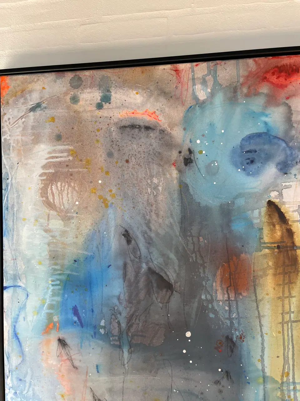 Nyt abstrakt maler i sort ramme, str 80x100 cm, Kivie Jespersen. Se også mine andre malerier. Befinder sig i Brønderslev- kan fragtes efter aftale.
