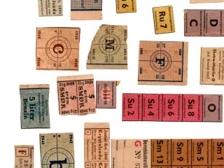 Forskellige rationeringsmærker fra 1 og 2 verdenskrig. Se scan. Samlet pris 25 kr