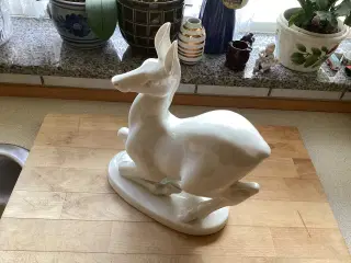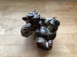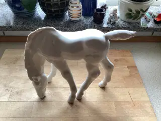 Fin Nisse med stav, bærende juleneg med fugle på ryg, stårende på plade/sne. H 13 x 11 cm. Pris 450,00 kr