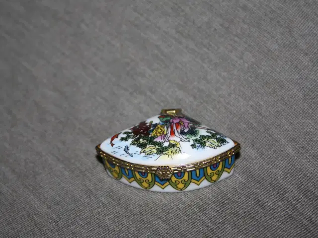 Pilleæske i porcelæn - 40 kr. smykkeskrin i sten - 40 kr. lommespejl i metal - 40 kr. Nøglering Delft - 25 kr. Hvis det er muligt for jer må i gerne komme og se tingen / tingende efter forudgående aftale da min mand har mulighed for at være hjemme om dagen