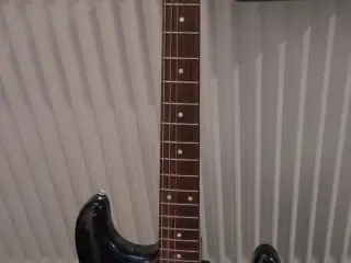 Elguitar, Stagg S-350 Vintage series ældre type med Fender hoved, opgraderet med alnico pick-ups og midter potmetret er udskiftet med en switch som tvangsætter bridge pick-up'en, hvilke gir' en større lyd variation, da alle kombinations muligheder nu er åbne. Guitaren er justeret og med lige hals og lav action - ligger godt i hånden og lyder kanon..!! Ønsker du at give din gamle guitar nyt liv med f.ex. nye pickupper eller måske at få den justeret, ka' jeg muligvis hjælpe - slå på tråden..!! Kontant ved personlig henvendelse..