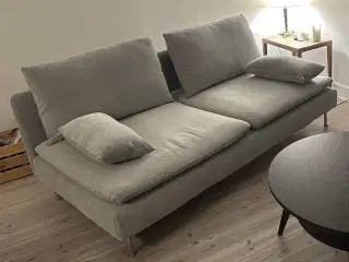 Vi købt vores sofa fra Ilva, har den perfekte størrelse for en mindre lejlighed, men stadig masser plads til slappe af og hygge i den. Farven er beige og vi har haft sofaen i 1,5 år - vi flytter og derfor er man velkommen til snart komme hente den.