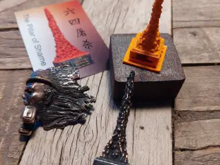 Gammel kiste årstal 1853 med ekstra skuffe og lille rum, nøgle til kiste og skuffe, jernhåndtag i enderne