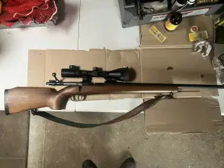 Remington 700 SPS Varmint riffel som ligger i et fuldt aluminiums chassis fra amerikanske XLR Riflen er kun brugt på indendørs skydebane og står derfor nærmest som ny. Der medfølger: - 2stk. AICS 10-skuds magasiner - Harris bipod - Diverse picatinny rails - Steiner M5XI 5-25x56 optik (15000kr i merpris) - Vortex precision matched montage ringe - Sonic lyddæmper Sælges da den desværre ikke bliver brugt nok.