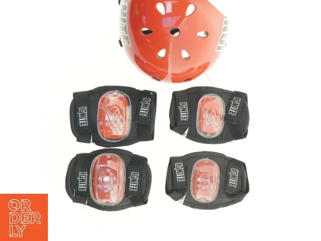 Klik på 'Se annoncen hos forhandleren' for at se varen i vores webshop Sæt bestående af en rød rulleskøjtehjelm med hvide bogstaver 'IGNITE' og luftventilationshuller, samt to sæt af beskyttelsesudstyr, der hver især omfatter et par albuebeskyttere og et par knæbeskyttere. Udstyret ser ud til at være i god stand med kun mindre brugstegn. Brand: IGNITE Farve: Rød Stand: 60 - Let brugt med små ridser Vi sender til hele landet for 49 kr. Leveringstiden er 1-3 hverdage. Du kan også gratis hente den på vores lager på Industrivej 10 i Slangerup. Er du i tvivl om varen stadig er til salg? Klik på knappen "Se annoncen hos forhandleren" for at se den i vores webshop. Kan du se den der, er den stadig til salg Orderly er en ny måde at købe brugt på. Vi har alle vores sælgeres ting på vores centrale lager. Derfor kan du være helt sikker på at få dine ting - og du kan samle flere ting på tværs af sælgere og kun betale én gang fragt.