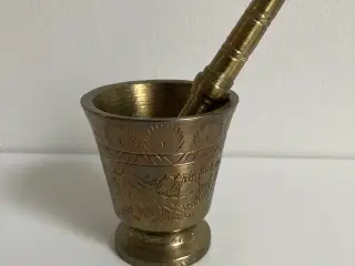 Morter i messing. Gammel. Flot. Har set en magen til, der koster over 300 kr.