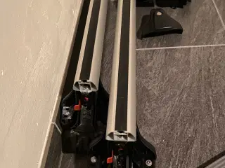 Meget velholdte Thule Wingbar sælges. De har siddet på en Hyundai i40 stationscar årgang 2016. De kan naturligvis også sidde på andre biler evt med et andet monteringskit. Utroligt støjsvage også ved motorvejs kørsel.