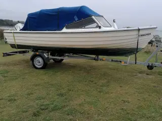 Super fin 19 fods speedbåd til både sjov og fiskeri og overnatning på søen. Model: Flipper 575 Motor: 4-Takt Mercury F60 ELPT incl. helt ny fjernbetjening boks. Trailer: Branderup 1202 R med elspil og fjernbetjening. Sidst synet: d. 1 september 2023. Har fået 2 stk. Nye vandtætte lejre og nye lygter og pærer hele vejen rundt Båden blev nymalet hele vejen rundt og fået nye vinduer i siderne for 2 år siden. Motoren er gået 100% Mekanisk igennem sidste år og har været opbevaret inde hele vinteren og er nu klar til denne sæson. Der medfølger diverse legetøj som tube og plade til at ligge på, anker og redningsveste til hele familien. Har en helt ny bluetooth bilradio som følger med hvis man ønsker at montere højtalere i den. For interesse ring på 29 87 22 75 tak.
