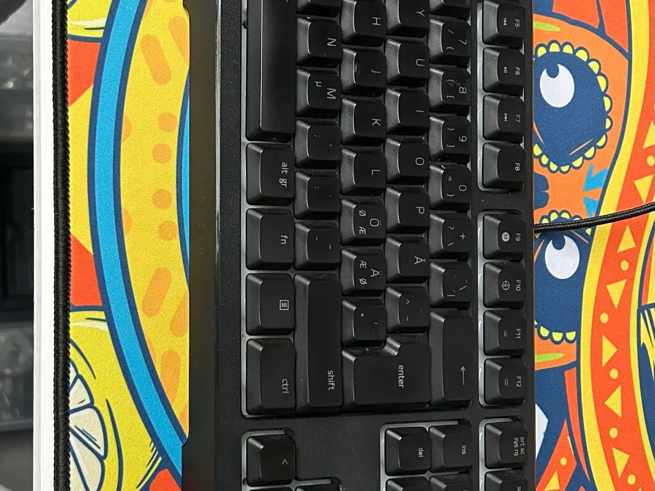 Rigtig godt keyboard til gaming inkl. wristpad som følger med. Synlig slitage på wristpad som ses på billedet, udover det, ingen defektheder