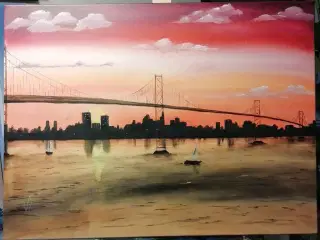 Akrylmaleri - Smuk farverig maleri 130 x 50 cm