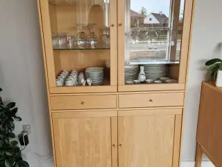 Vitrineskab med indbygget lys - Højde 170,5 cm - Bredde 92,5 cm - Dybde 40 cm Lys bøg med glaslåger og glashylder.