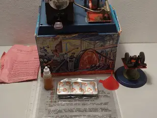 Mamod hammer med original kasse, som passer til dampmaskiner. Fremstillet i England omkring 1970. Højde ca. 5,5cm. Virker perfekt. Rigtig fin stand jvf. fotos. Mål på bundplade: (9 x 7)cm