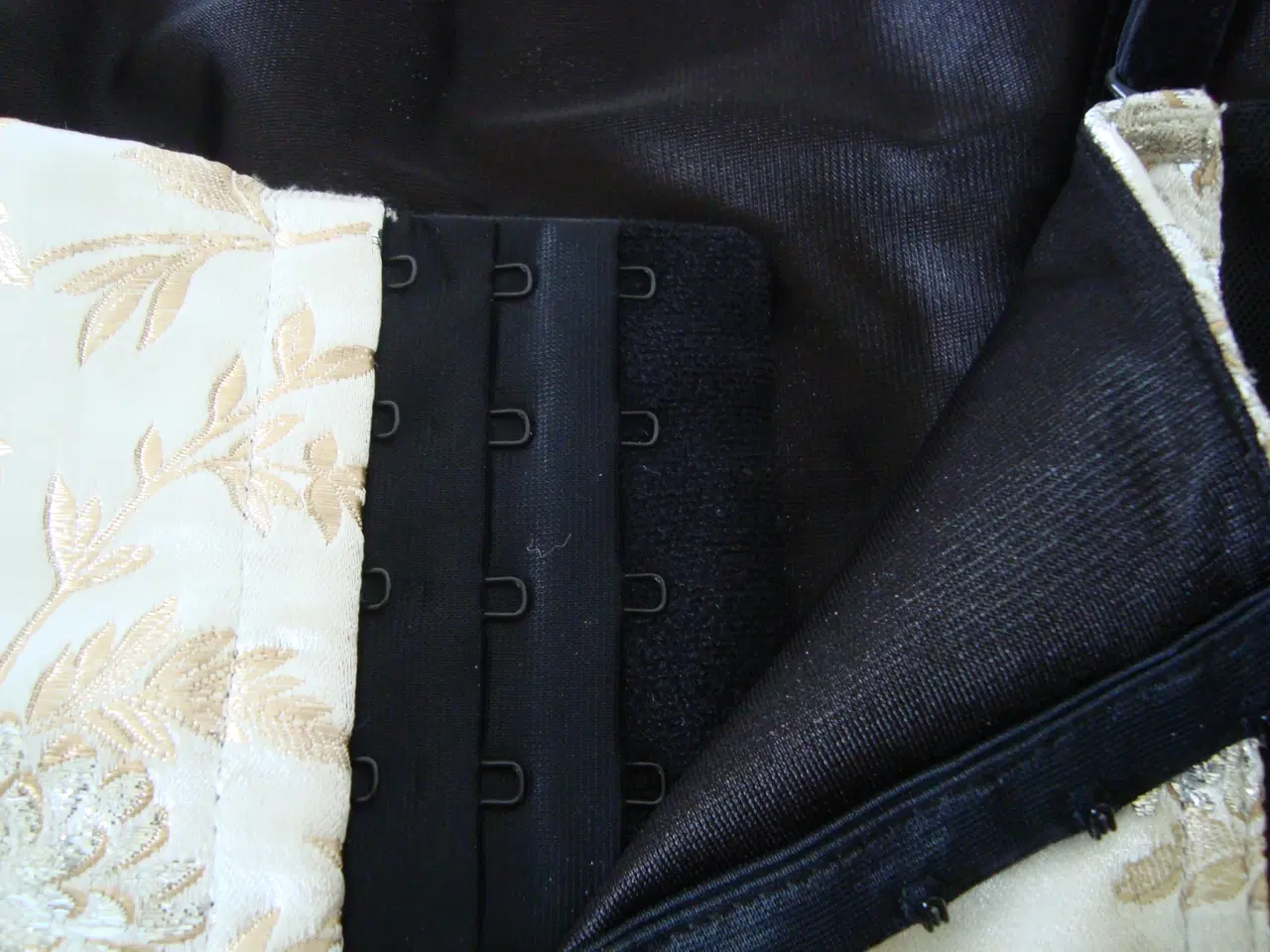 Sort og guldfarvet festbluse med shine og diskret glimmer samt spænde over maven med hvide sten. Justerbare stropper, stivning i siderne og justerbar korset lukning på ryggen - fra H&M. 60 % Polyamid 27 % Viskose 11 % Metalfiber 2 % Elastan Str. 38 / Medium. Brystmål (Hele vejen rundt) : 77 cm Længde (Fra hals) : 36 cm Ingen huller, pletter eller lignende. Afhentes i 4100 Ringsted, eller sendes med GLS eller DAO for 55 kr. Kan evt. mod forudbetaling, og efter nærmere aftale hentes i 2680 Solrød Strand. Se også mine andre annoncer.