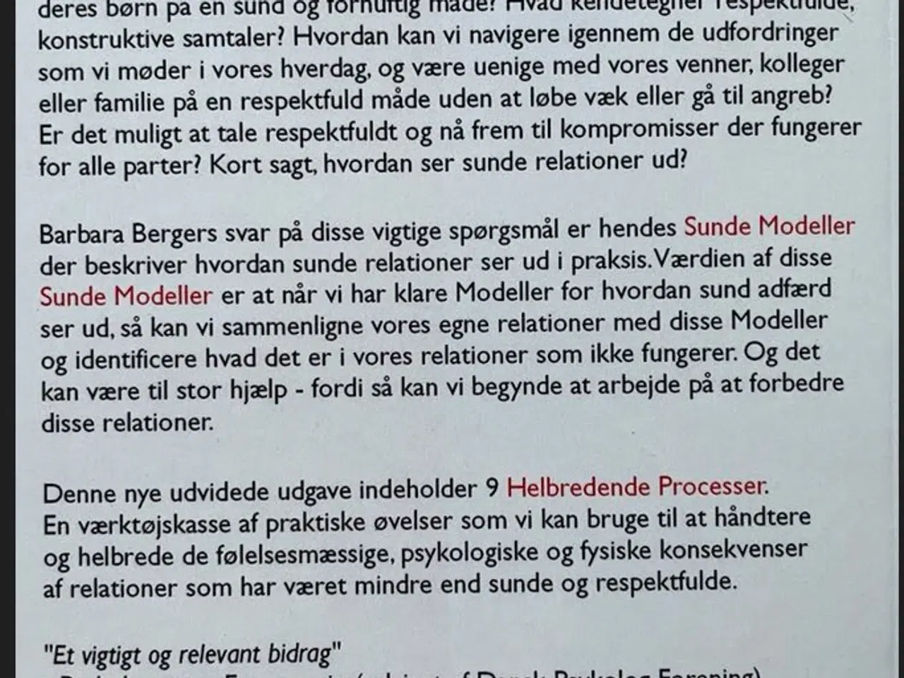 OBS! Ny udvidet udgave. De fleste udfordringer som vi møder i vores dagligdag, har at gøre med vores relationer – det kan være med vores partner, familie, forældre, børn, venner eller kolleger. Derfor vil de fleste af os gerne vide hvordan vi kan komme bedre ud af det med hinanden.. Hvordan ser et sundt parforhold ud mm? Se bagsidefoto for yderligere info.