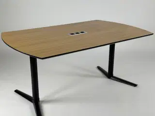 Dencon Delta Bord 280 cm – Rummeligt konferencebord i natur med sort stelDelta-serien fra Dencon er kendt for sit funktionelle design og sin høje kvalitet, udviklet til moderne kontor- og mødemiljøer. Dette Dencon Delta bord kombinerer en stor, rummelig bordplade i naturfinish med et stilrent sort stel, hvilket skaber et professionelt og indbydende udtryk.Med sine generøse mål er bordet ideelt som konferencebord eller mødebord, hvor der er behov for god plads til samarbejde og dialog. Den organiske form bidrager til en bedre dynamik omkring bordet og gør det nemt for alle deltagere at interagere. Stellet sikrer stabilitet, mens bordpladen fremstår slidstærk og velegnet til daglig brug i travle arbejdsmiljøer.Dette bord er et oplagt valg til virksomheder, der ønsker et tidløst og funktionelt møbel, som understøtter produktive møder og et professionelt arbejdsmiljø.Specifikationer:Producent: DenconModel: Delta bordMål: 200 x 120 x 74 cmFarve: Natur bordplade / sort stelMateriale: Træfinér bordpladeStel: Metal Anvendelse: Konference, møderum, kontorFordele:Professionelt og stilrent designStabil konstruktion til daglig brugFremmer samarbejde med sin organiske formVelegnet til både store og mellemstore møderumDette er et brugt møbel fra en dansk virksomhed, hvilket betyder, at der i nogle tilfælde kan forekomme mere eller mindre tydelige brugsspor. Alle møbler er renset og gennemgået, så du er sikret et møbel af høj kvalitet, der er klar til brug.