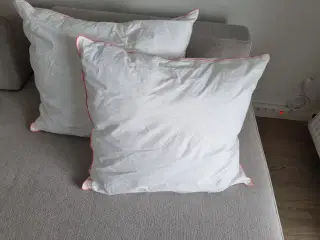 Fin hvid stor og blød pude, med langhåret foux fur pels foran. Har kun stået til pynt. Puden er 90x50cm. Fra røg- og dyrefrit hjem.
