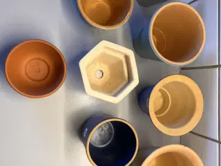 2 brune blomster hængepotter diamanter udv. 9.5 cm med læderstropper. I alt 20kr og kan sendes.