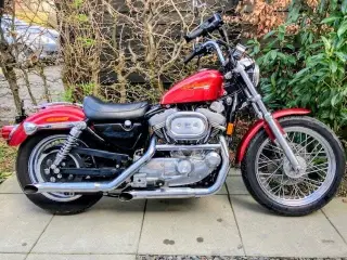 Harley Davidson motorcykel. Jern sport fra 1963 matching Numbers stellet og motor har samme nummer . gear i højre sidde . Kører starter bremser som den skal. Hele toppen er renoveret for år tilbage har nyt batteri og nyt lade anlæg . Dejlig cykel men får den ikke brugt nok . Cyklen skal synes ved ejerskifte. Eller du kan få den med uden pladen.