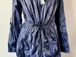 Flot læderfrakke str. 44 sort med for af 100% polyester Ubrugt. Længde 91 cm Ærmelængde fra armhule 50 cm Brystmål 136 cm mål nede 126 cm
