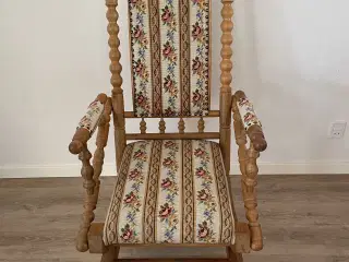 Super flot og elegant rokkestol med broderet betræk. Pæn stand. (Kan evt. leveres på Djursland, Randers eller Århus mod betaling af benzin)