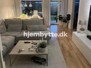 Dette er en annonce for lejlighedsbytte, hvor du bytter din lejebolig med en anden lejebolig. Skøn 3 værelses lejelighed med overdækket stor altan. Ligger ugeneret da ingen kan kigge ind, da det er lave rækkehuset, man har udsigt til, til begge sider. Ligger natur skønt, lige ved siden af mose og stier. En rigtig skønt område🙂