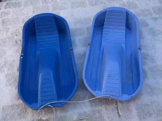 Diverse Bobslæder med / Uden Bremser . Den Lyseblå t.h.. er slidt i Bunden i den ene side. Frit valg pr. Styk 50,- kr 8/1-26 Opdateret Den Lyseblå t.h. er stadig til Salg. Resten er SOLGT Slæde ,