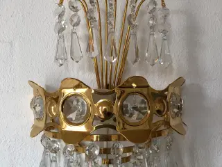 Østlings væglampet, rustfrit stål og rødt glas. Ny fra nedlagt butik. E14 max 40w H:24cm m/glas B: 10cm Ø:glas ca. 14cm.Lampe fra svensk fabrik art nr. 4505