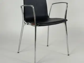Eyes EJ 2-XU Chair fra Erik Jørgensen – En ikonisk stol med karakter og komfortEyes EJ 2-XU Chair fra Erik Jørgensen er en elegant og karakterfuld mødestol, designet af den danske designduo Foersom & Hiort-Lorenzen. Med sit organiske formsprog og de ikoniske "øjne" i ryglænet, tilføjer stolen både personlighed og lethed til ethvert rum – hvad enten det er i kontorlandskabet, mødelokalet eller den moderne hjemmearbejdsplads.Stolens polstring er holdt i en dyb blå nuance, der tilfører rummet et raffineret farvespil uden at tage opmærksomheden fra omgivelserne. Det stabile firebenede stel i krom giver et stilrent udtryk og høj funktionalitet. Stolen er drejbar, hvilket gør den praktisk i brug og ideel til mødesituationer eller fleksible arbejdsstationer.Specifikationer✔ Model: Eyes EJ 2-XU ✔ Producent: Erik Jørgensen ✔ Design: Foersom & Hiort-Lorenzen ✔ Betræk: Blå valour ✔ Funktion: Drejefod i forkromet stål ✔ Anvendelse: Mødestol, konferencestol, loungeområde, hjemmekontorFordele✅ Komfortabel siddeoplevelse med let ergonomisk støtte ✅ Tidløst dansk design med karakteristiske detaljer ✅ Velegnet til både private og professionelle miljøer ✅ Nem at integrere i forskellige indretningerDette er et brugt møbel fra en dansk virksomhed, hvilket betyder, at der i nogle tilfælde kan forekomme mere eller mindre tydelige brugsspor. Alle møbler er renset og gennemgået, så du er sikret en stol af høj kvalitet, der er klar til brug.