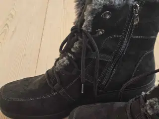 korte støvler i sort med røde aftegninger mærke Rhode utrolig god pasform og dejlig at have på det er med snøre og materialet er i nubuck nypris 700 sælges for 350 kr