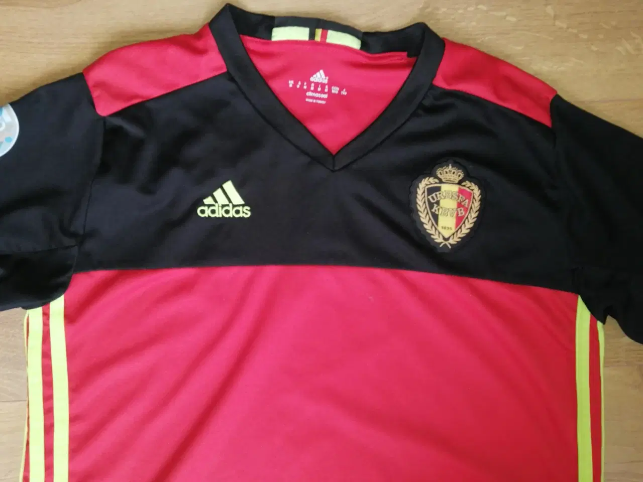 BELGIEN HJEMMEBANE TRØJE 2016-17, ADIDAS, STR. M, CLIMACOOL, POLYESTER, HAR EN MINDRE PLET UNDER LOGO( SE BILL. 4) DERFOR LAV PRIS. FARVE SORT/ RØD MED GULE STRIBER, UEFA LOGO PÅ ÆRME. NB ER VAREN AKTIV ER VAREN TIL SALG, SENDER GERNE, BETALING UPFRONT. PRISEN ER IKKE TIL FORHANDLING-BUD BESVARES IKKE.