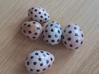 Flotte lilla hånd dekorerede fedtstens æg fra Afrika. Den store er 7 cm i længden og har indridset træer. De tre små er 4 cm og har indridset hjerter. Kan afhentes København Ø eller sendes på købers regning.