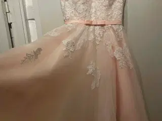 Søger du en romantisk og smuk brudekjole, er denne yndige kjole lige det rette valg. Der er tilhørende underskørt