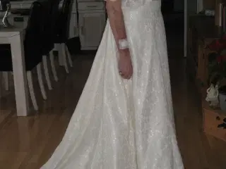 Brudekjole str e 40 d 36 mærke pronovias model murillo filling relleno 100 procent polyester farve beige 3500kr årgang er 1995