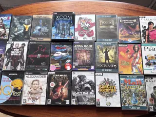 - Fear (uåbnet) - Thrillville off the rails (uåbnet) - Brokensword - The shadow of the Templars - Breed - Evil Genius - Giants Citizen Kabuto - Casino Empire - Casino Tycoon - Emperor - Civilisation IV Complete edition - Mahjongg 3D - Runaway - Deus Ex Invisible war -Frontline Attack - Crysis 3 - Aliens VS Predator - Deus Ex - C&C Red Alert 3 - The Battle for Middle-Earth -Warcraft 3 Expansion set - Dawn of War - Starwars Kinghts of the old Republic - Skatteplaneten - Assassin's Creed