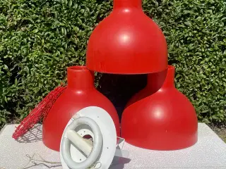 2 pendler med lysdæmpende pærer (4 lysgivere i hver lampe) og stofledninger. Inkl. lysskinne og adaptorer. Har hængt i et ikkeryger hjem. Giver en flot og blændfrit belysning. (Befinder sig i Jels).
